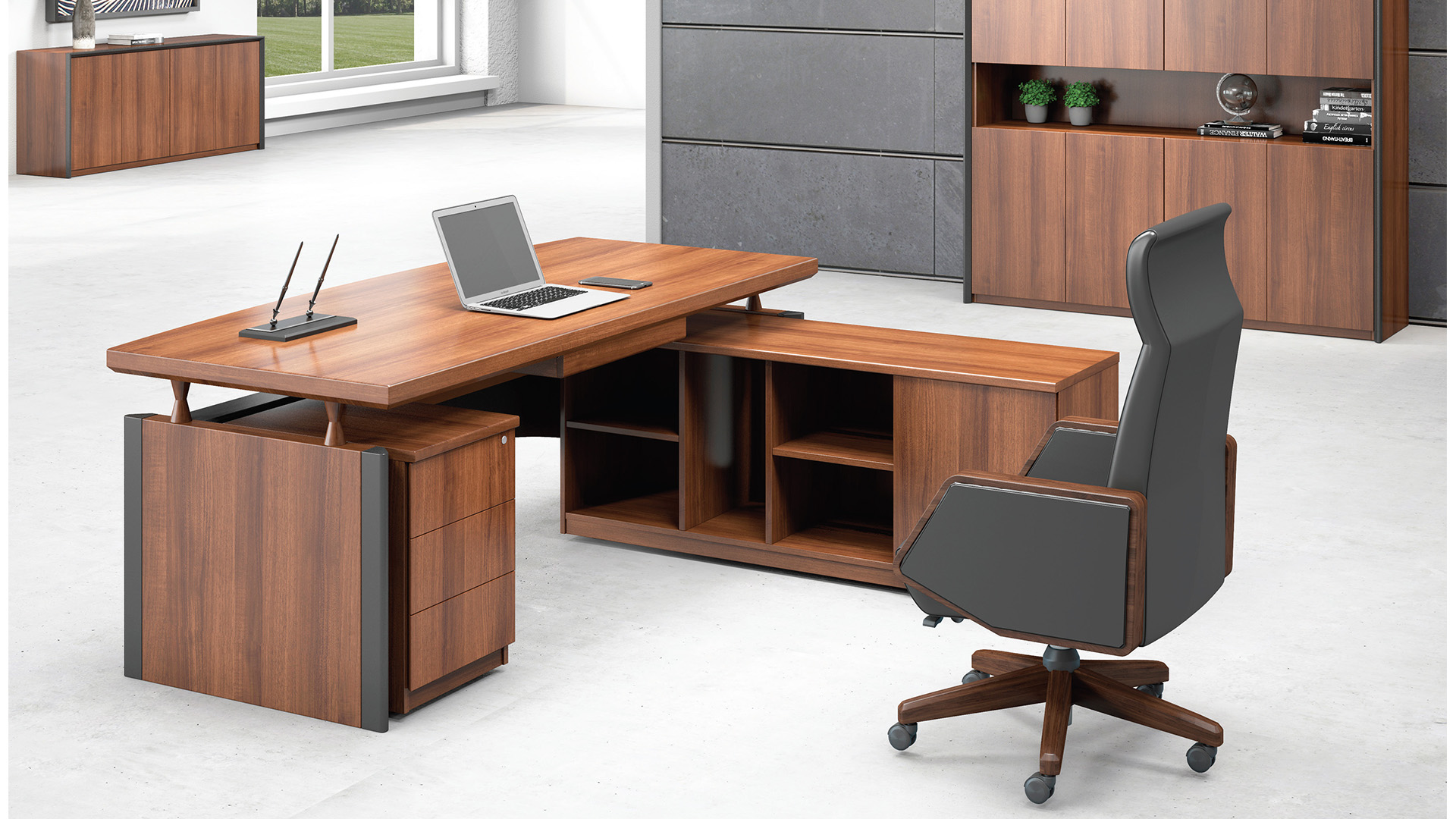 悬浮桌面搭配单独侧柜,赋予产品外观简约、结构稳重的视觉感受。