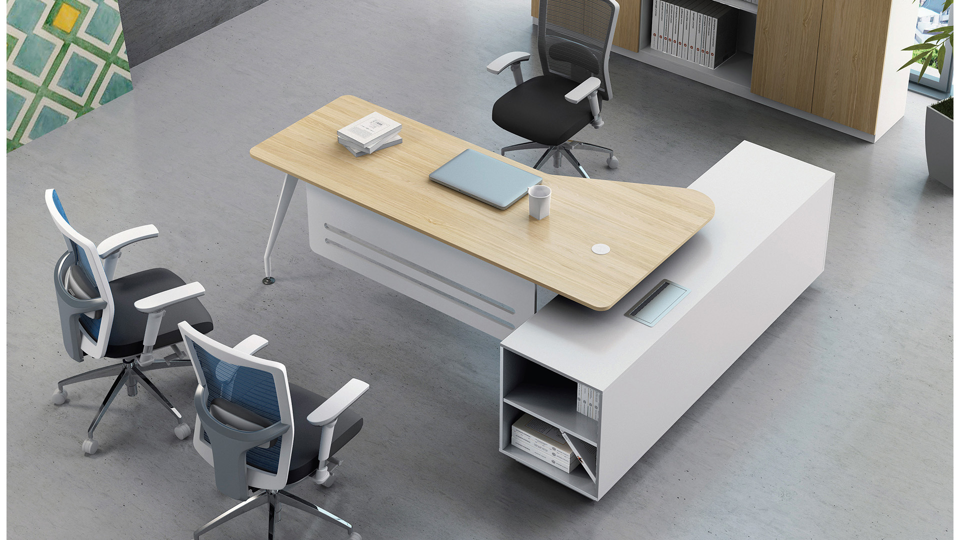 薄板桌面搭配独特钢脚设计,明快舒畅,百搭百变。